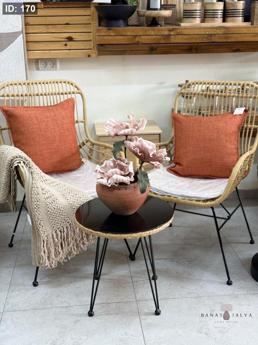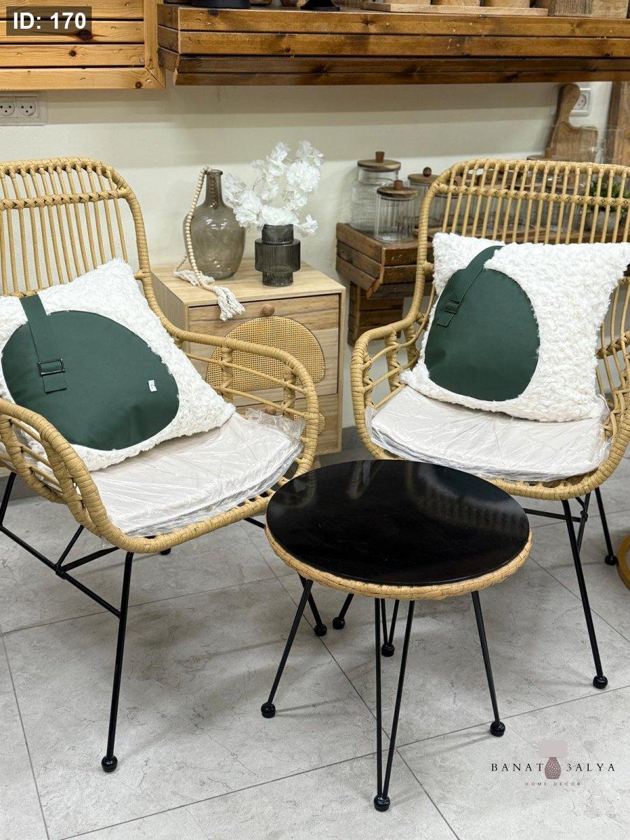 طقم قعدة كرسيين وطاولة من الراتان الاصلي