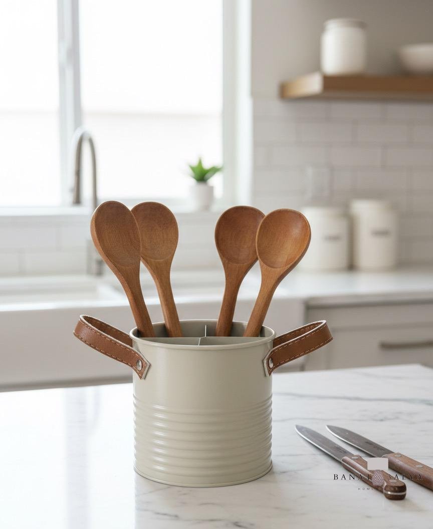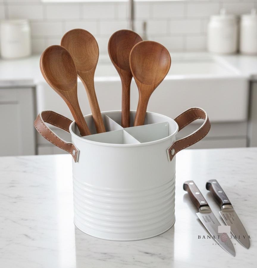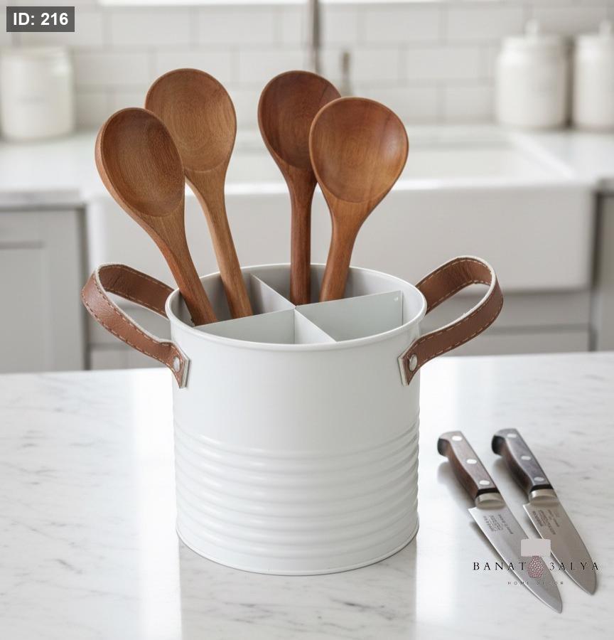 ستاند معدن مع ايدان جلد للملاعق والشوك