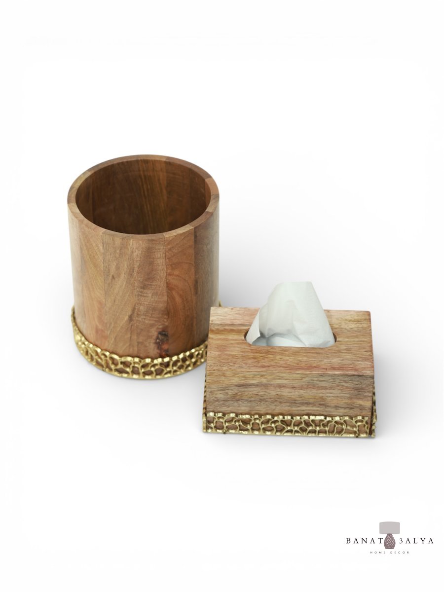 سطل مع علبة محارم خشب مانقو بإضافة النحاس الهندي