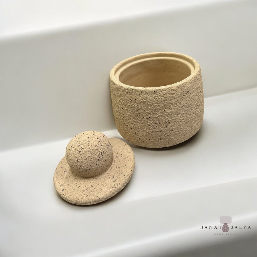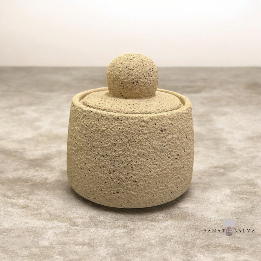 مضيفة حجر مع غطاء حجم كبير بيج منقط