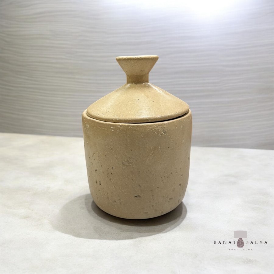 مضيفة حجر مع غطاء بيج سادة حجم وسط