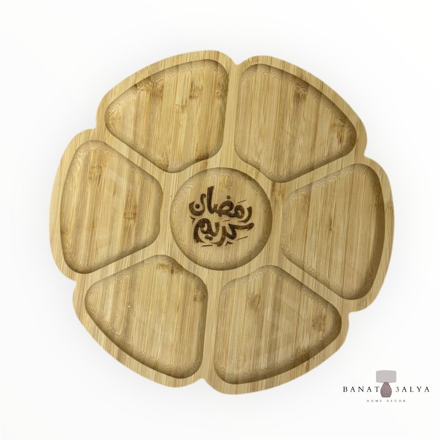 صحن خشب للتقديم بحفر "رمضان كريم"