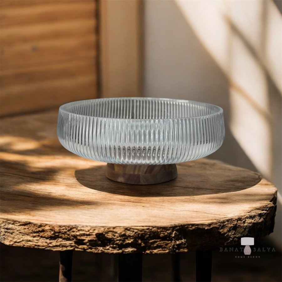 جاط مدور مقعر زجاج حجم كبير مع رجل خشب