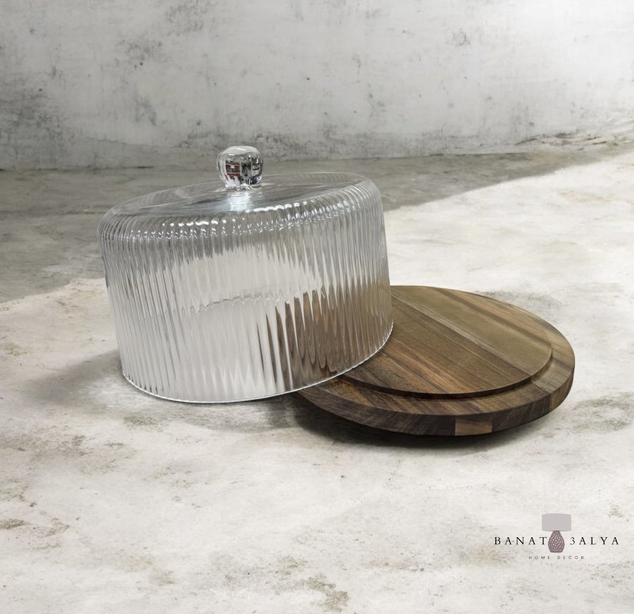 مضيفة خشب مع غطاء زجاج حجم كبير