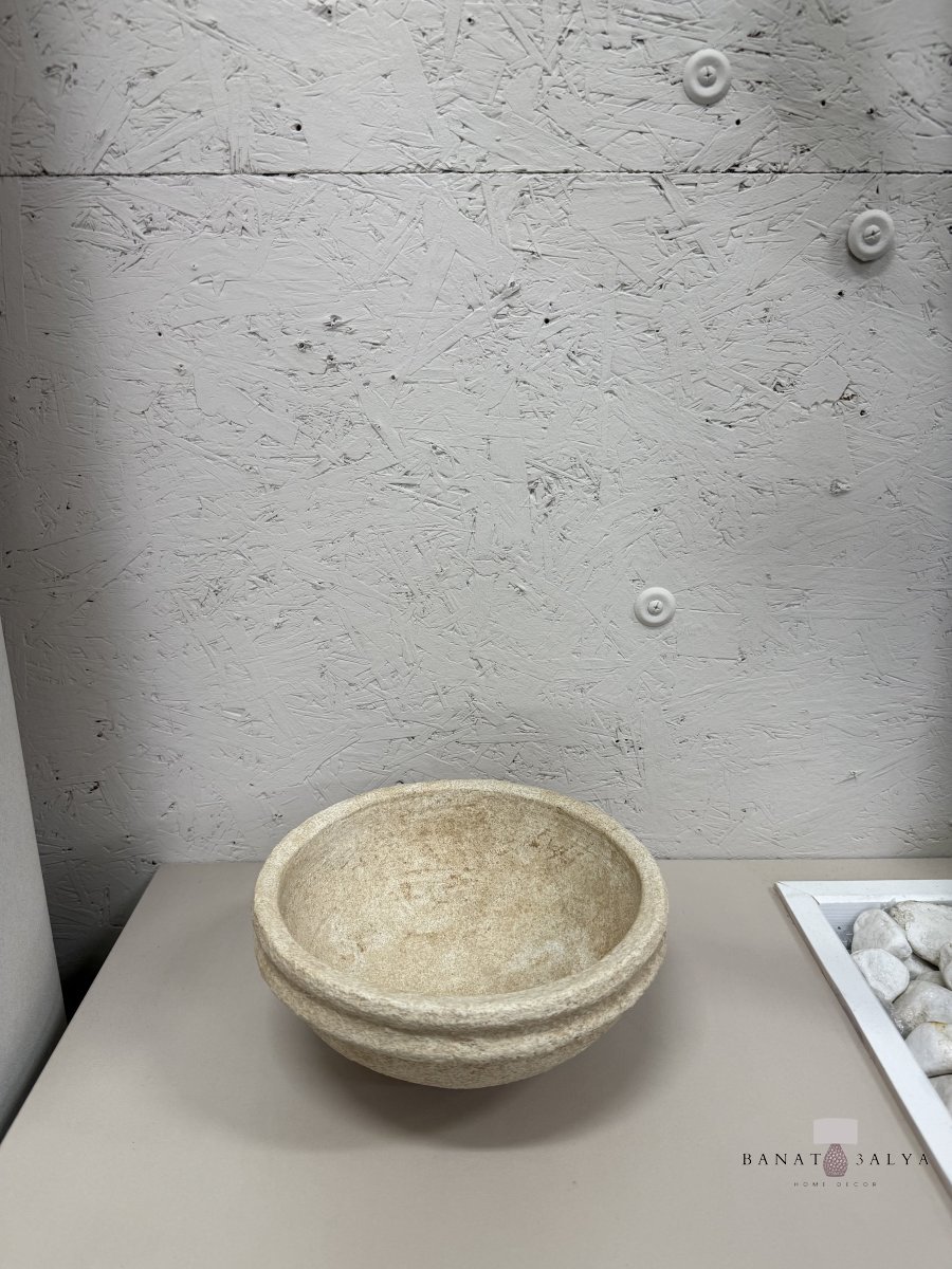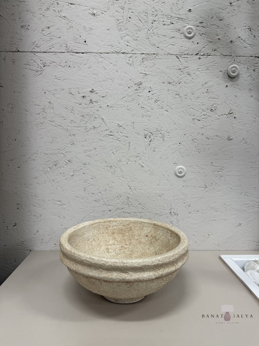 صحن حجر بيج ثقيل للتقديم حجم وسط