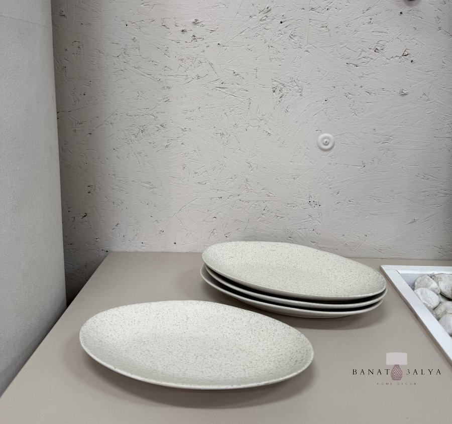 صحن بيضوي حجر املس حجم وسط بيج