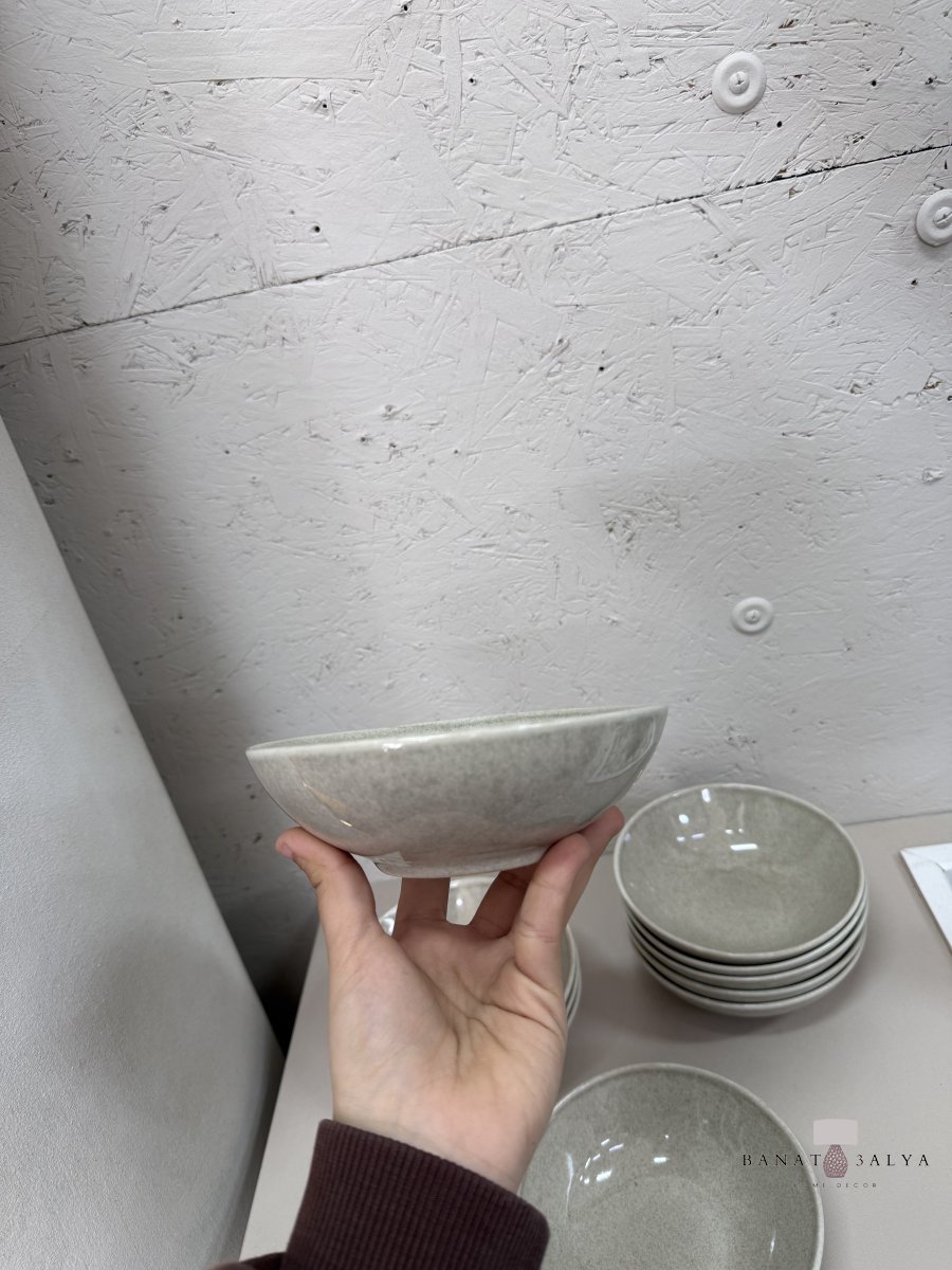 صحن دائري مغوّط حجر حجم صغير رمادي