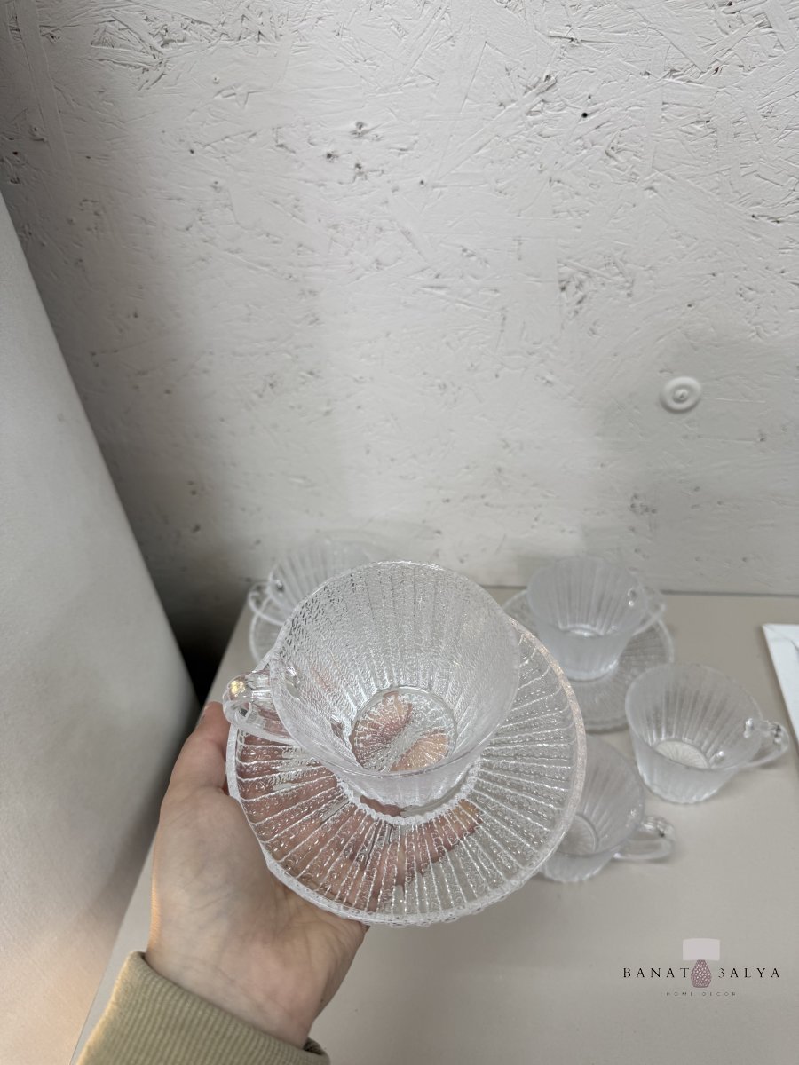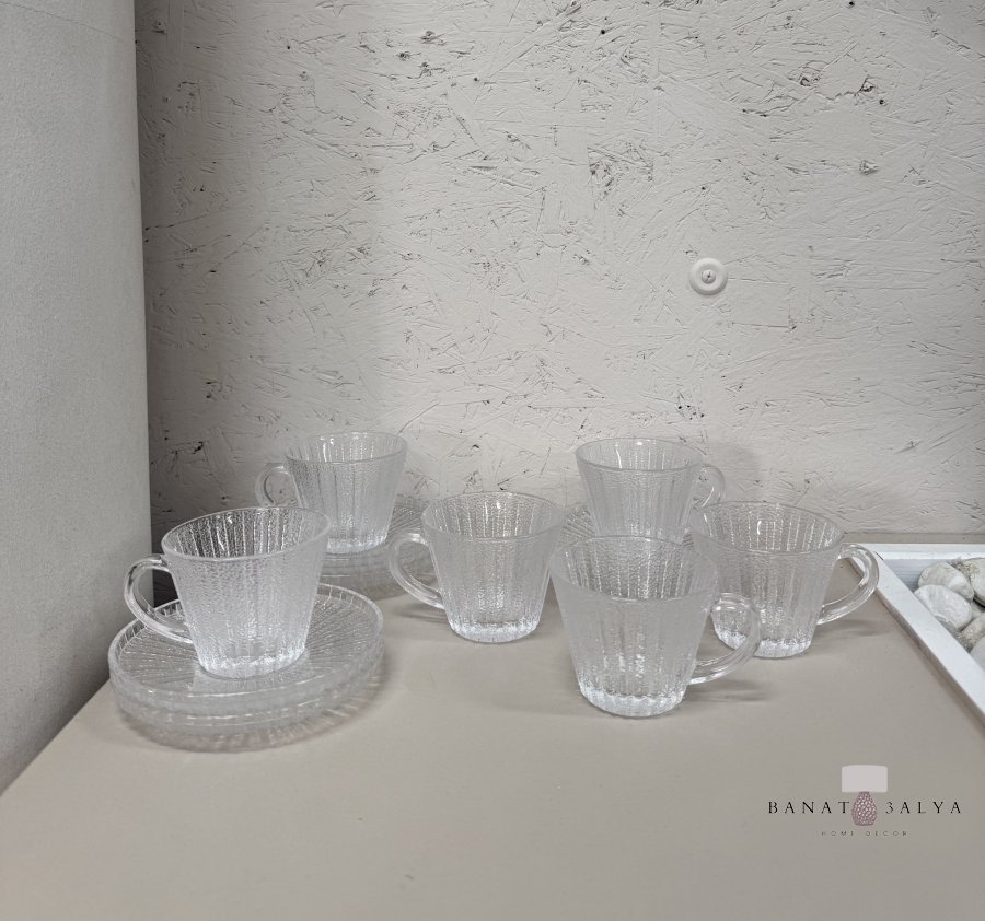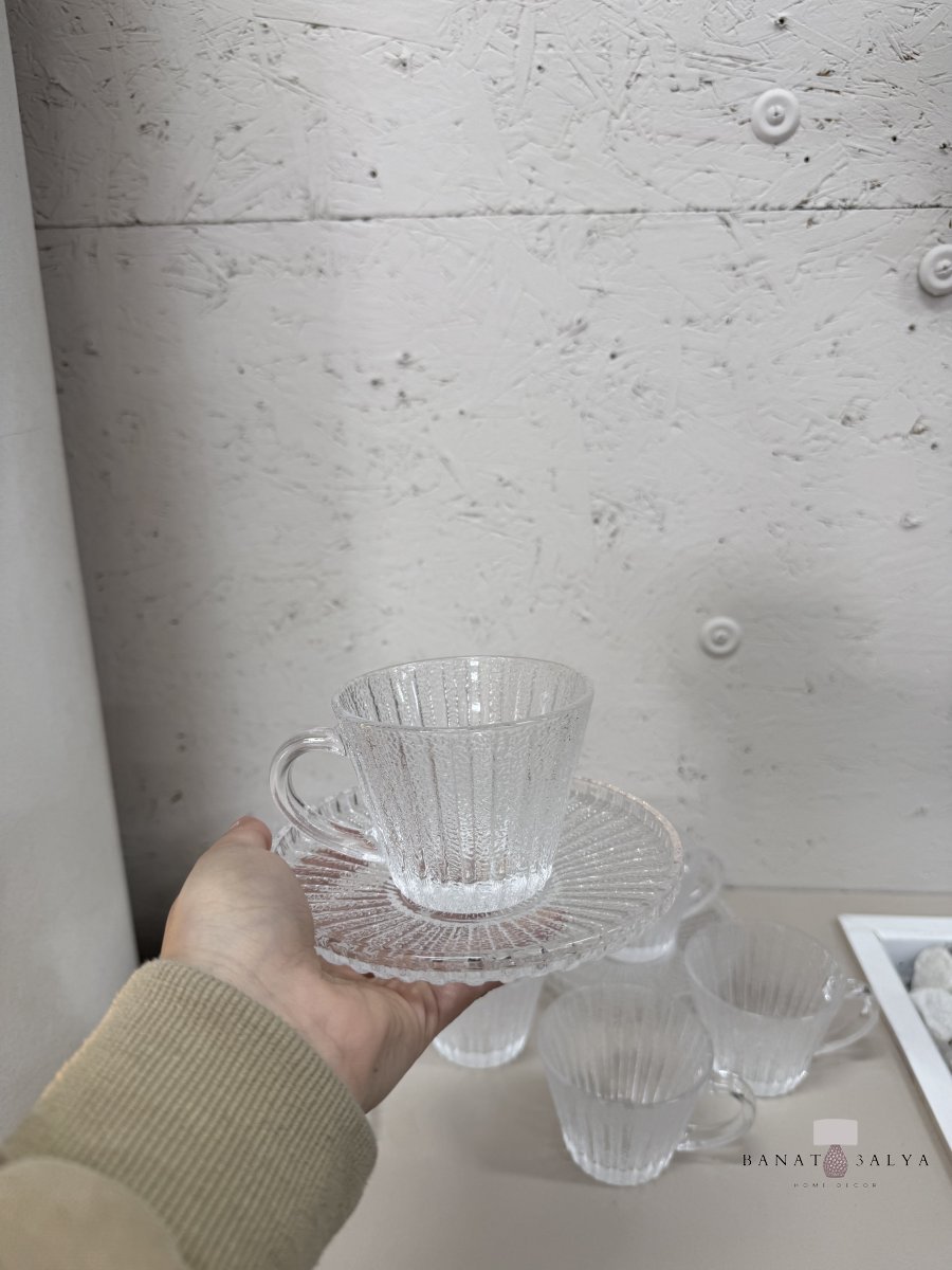 طقم كاسات شاي شفاف منقش 12 قطعة (6 صحون ، 6 كاسات)