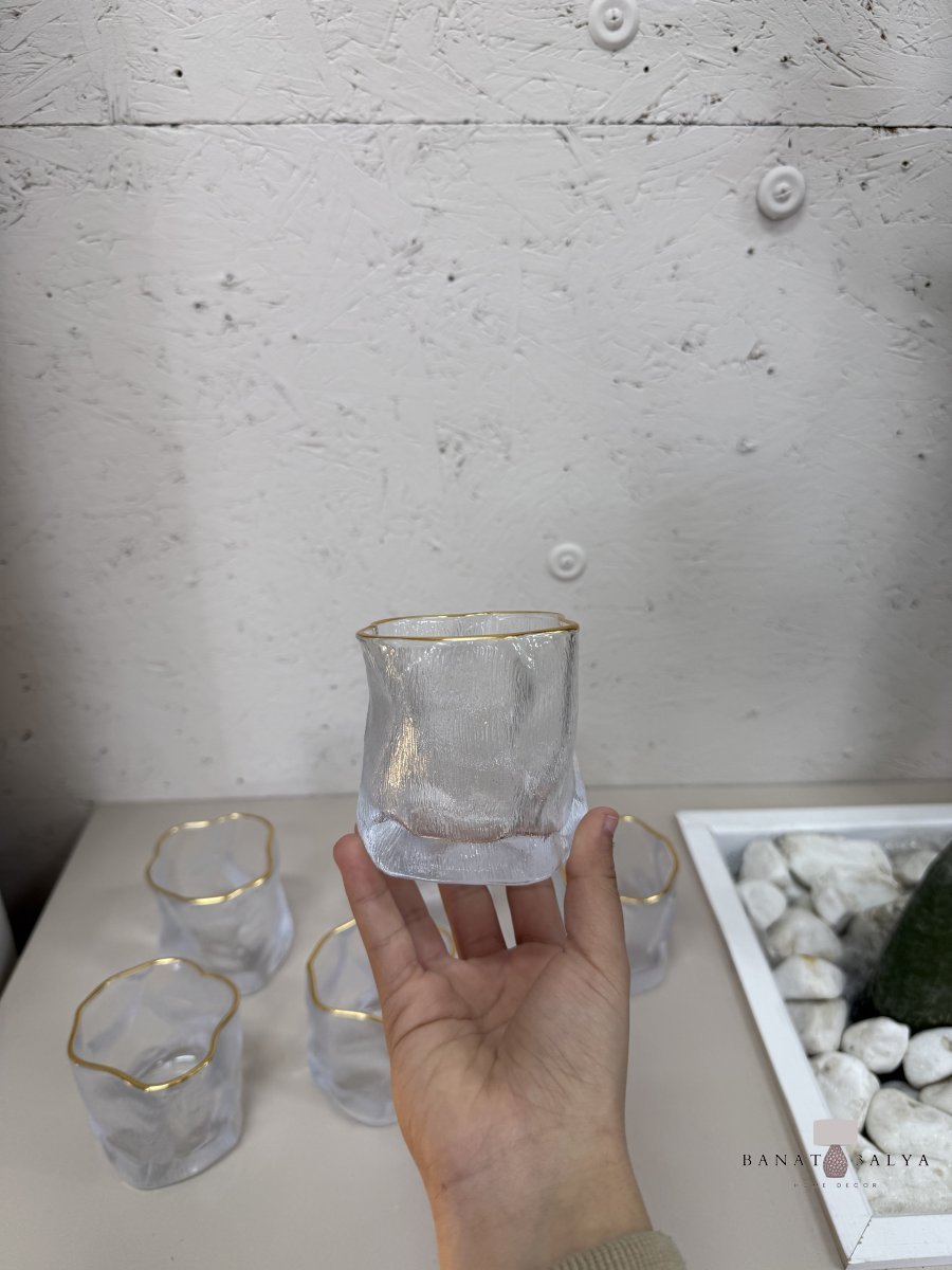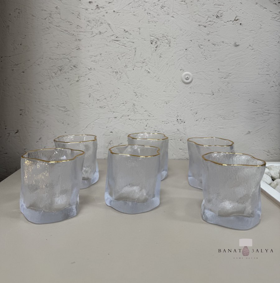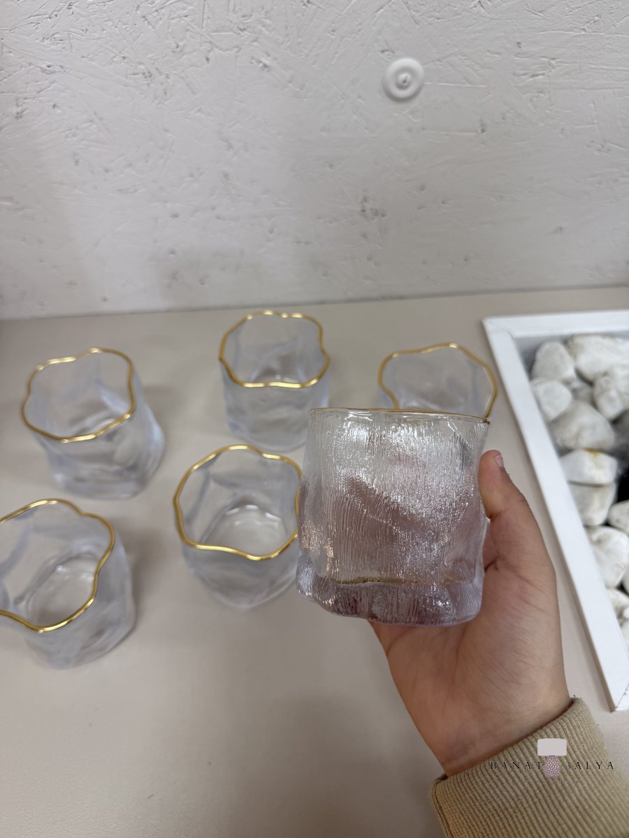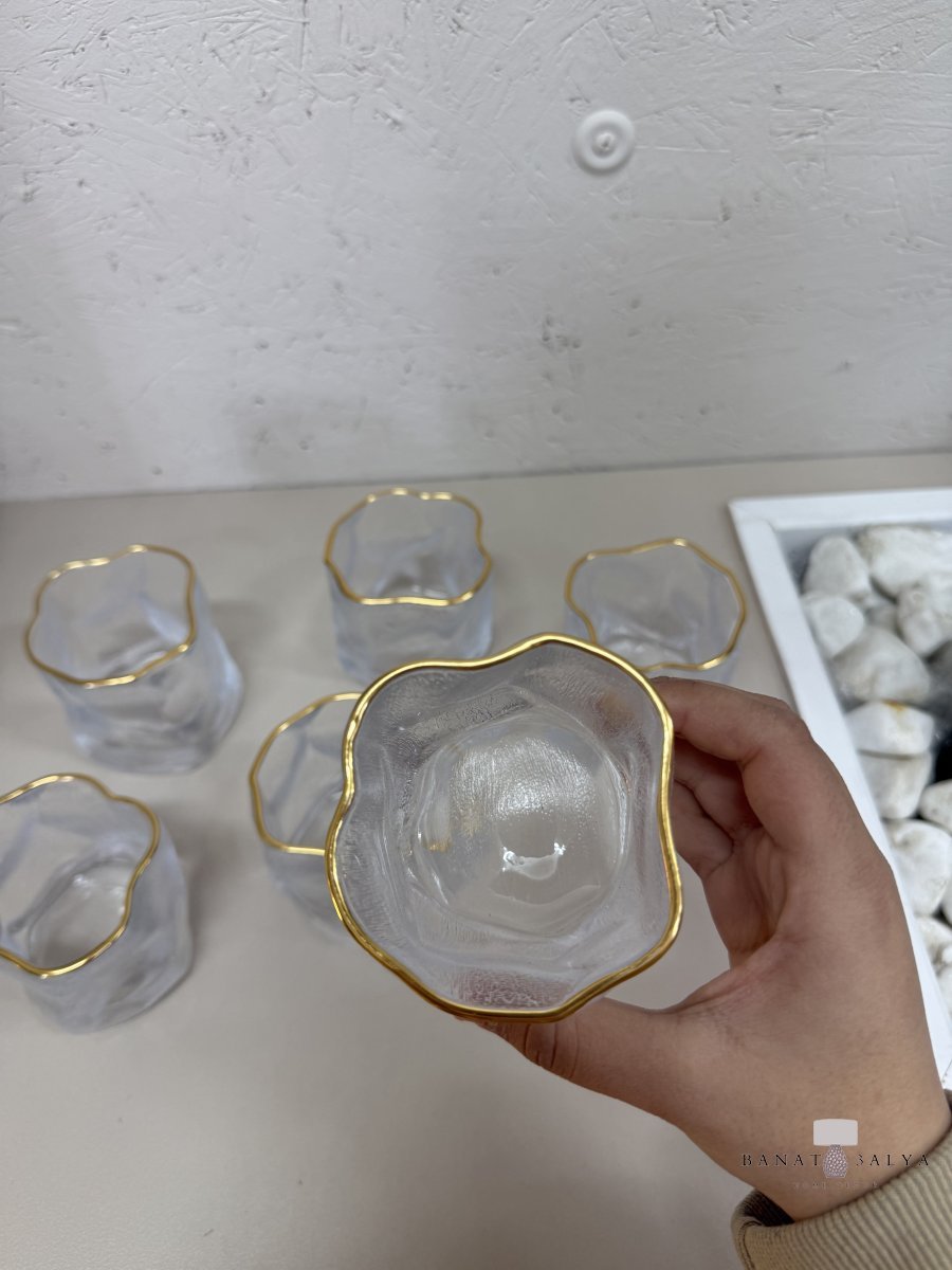 كاسات عصير بتصميم مُموّج مع إطار ذهبي (6 كاسات)