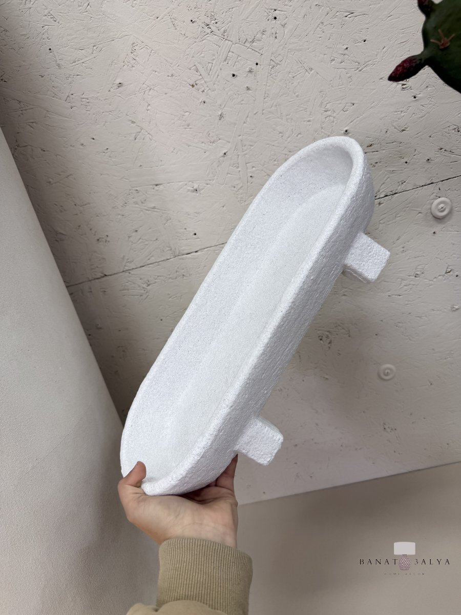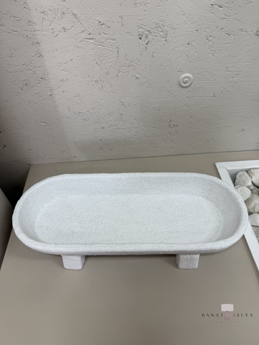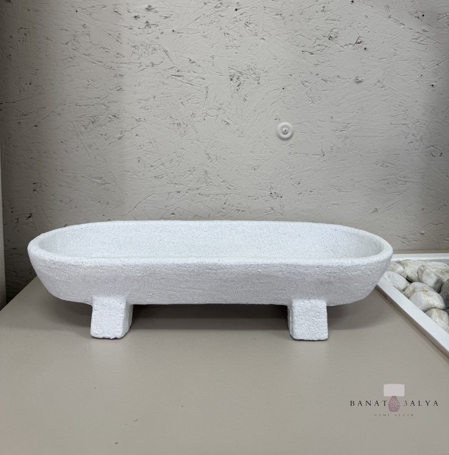 جاط حجر ابيض بيضوي مع 4 ارجل حجم كبير