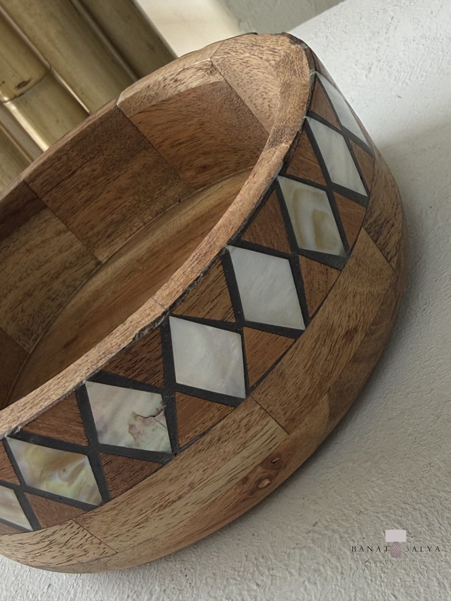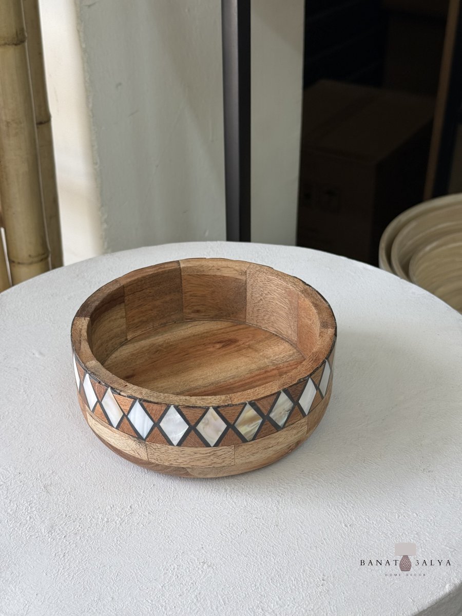 صحن خشب مانقو مليان مدور مع إضافة الكرستال