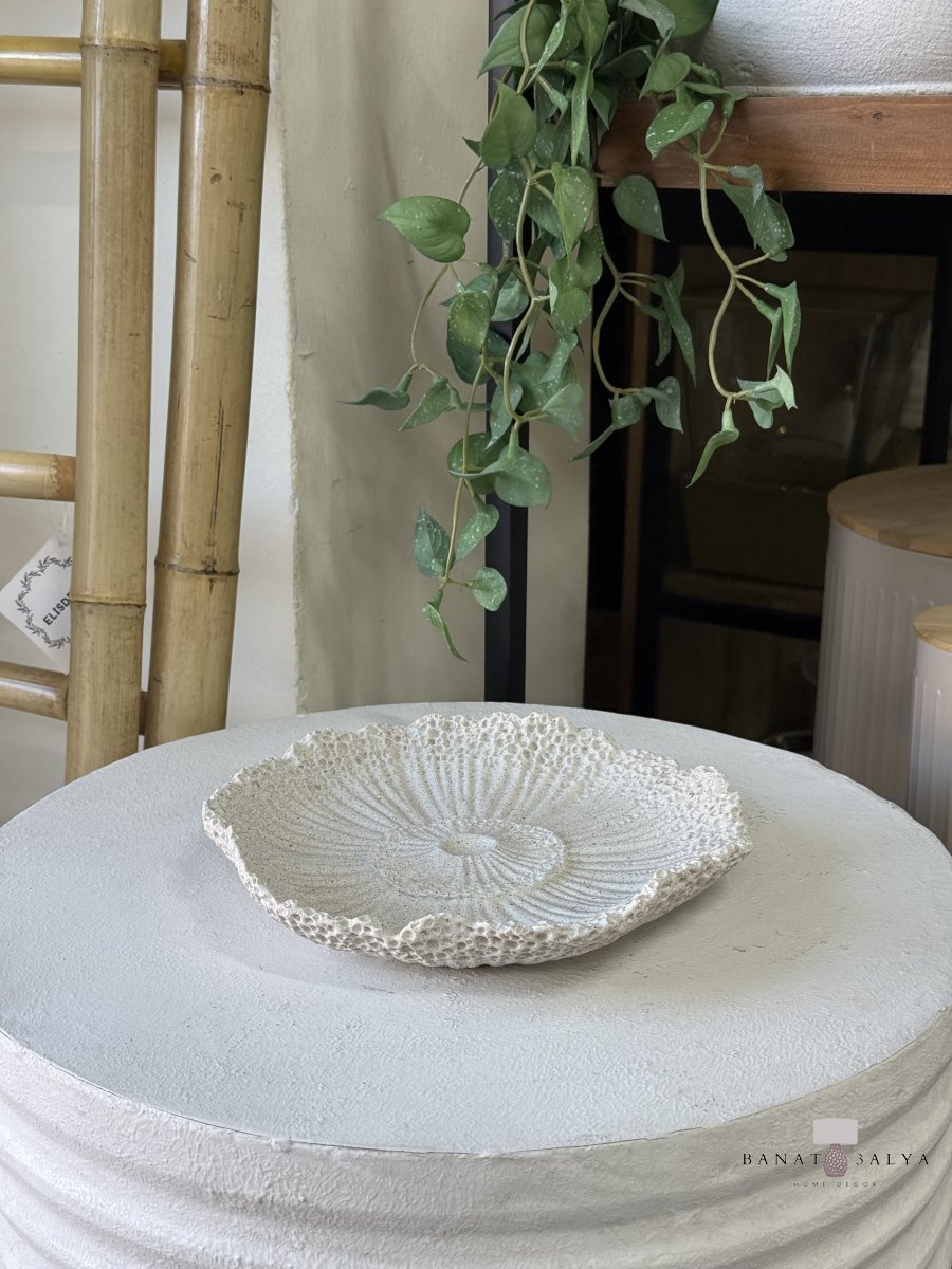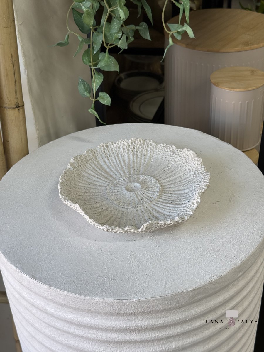 صحن حجر ابيض بتصميم "وردة"